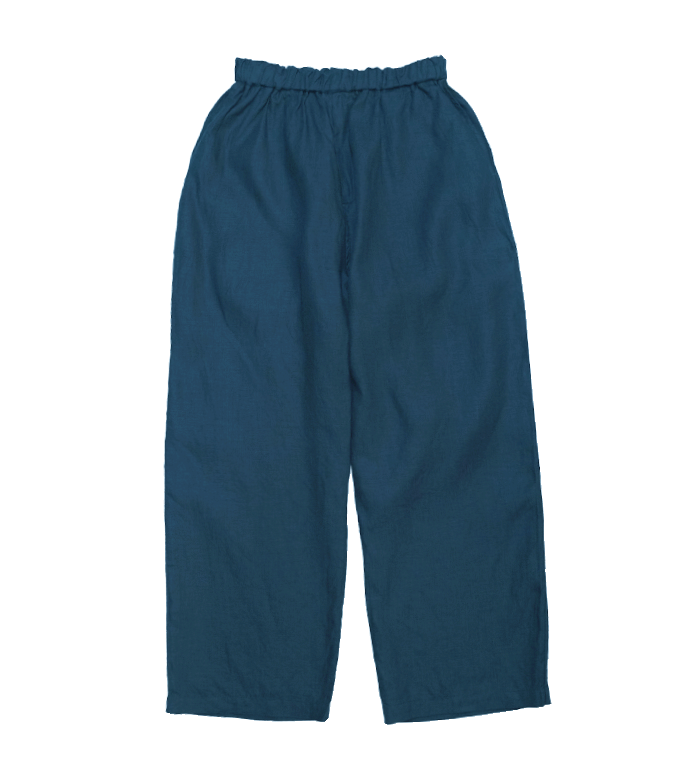 十分に幅があり、ゆとりがありますが、シルエット自体はストレートです。非常に軽量なパンツで、ポケットの中の重さに耐えられるようベルトループが付いています。ウエストゴムと内側の紐で、ベルトを用いなくても着用が可能です。