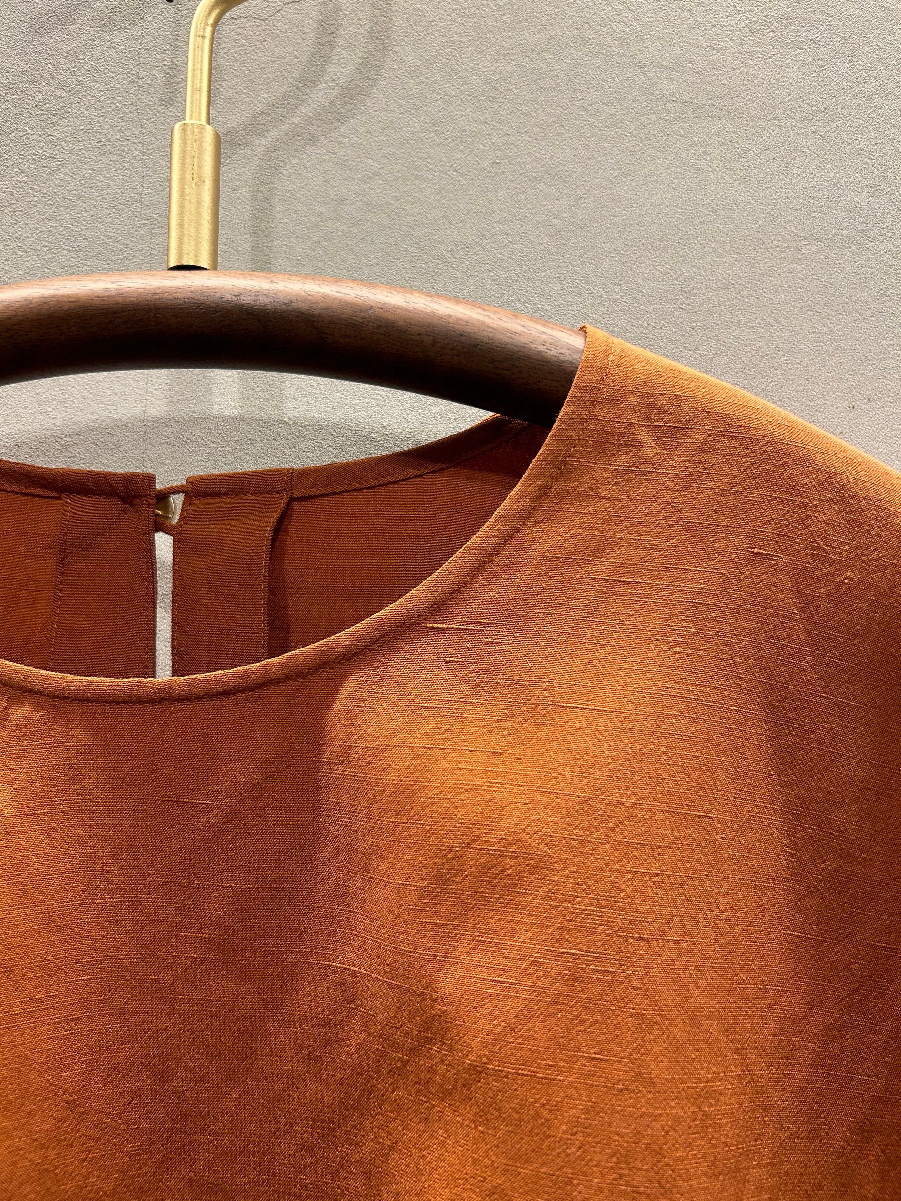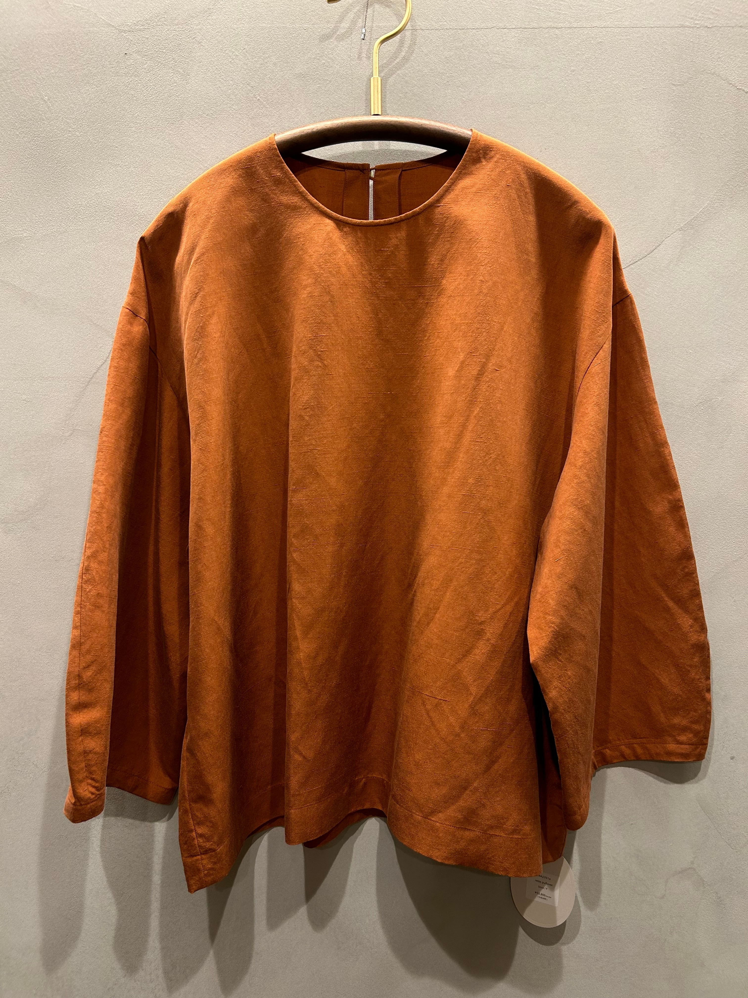 シルクがもつやわらかさとリネンがもつハリ感が調和するしっとりとしたテクスチャーの生地でお作りするrelax pullover。