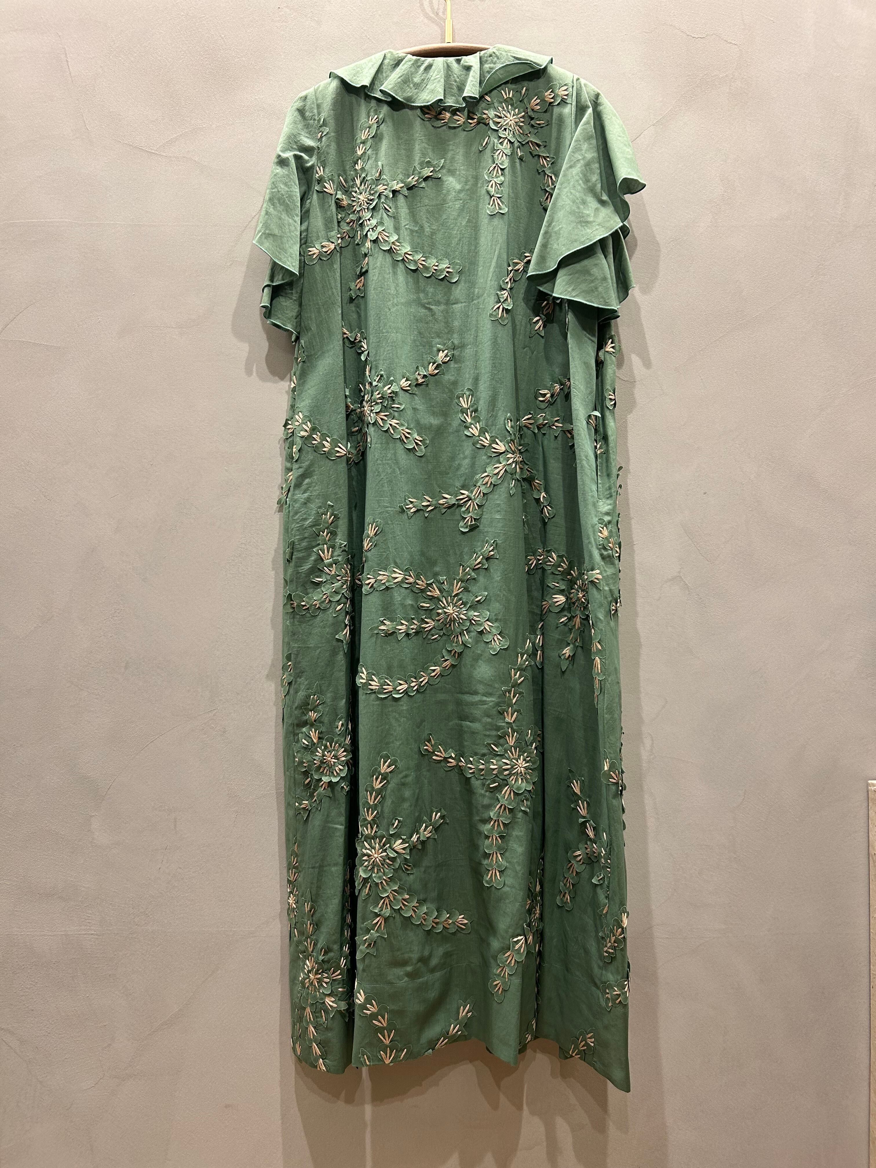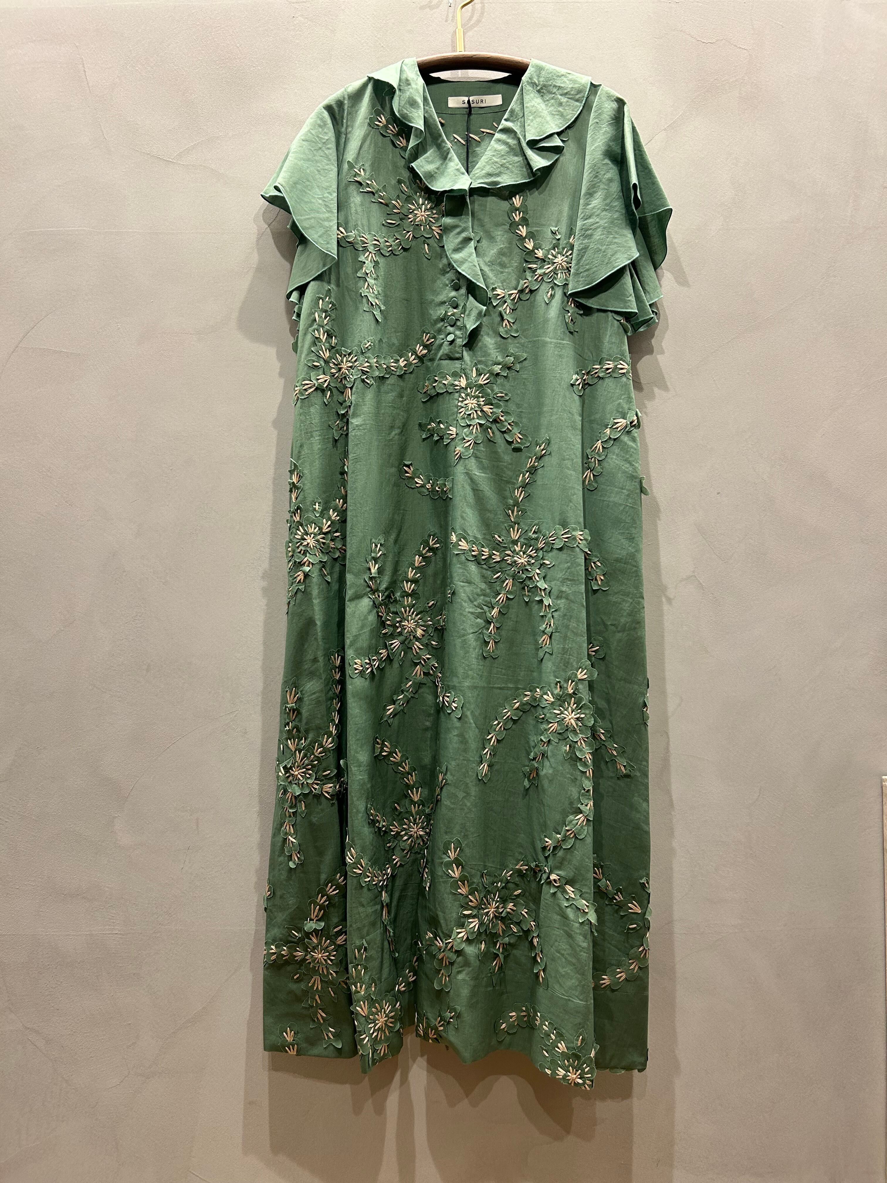 ゆったりと広がるシルエットと、不均等なフレアーと波のあるパーツの組み合わせで、リゾートの雰囲気を意識したアイテムです。