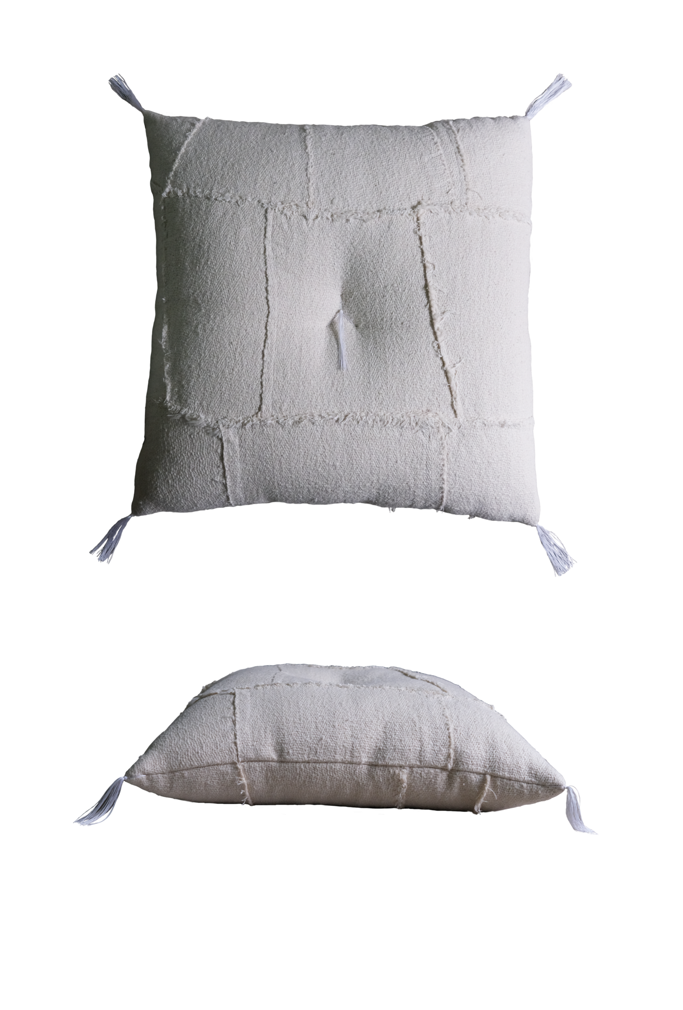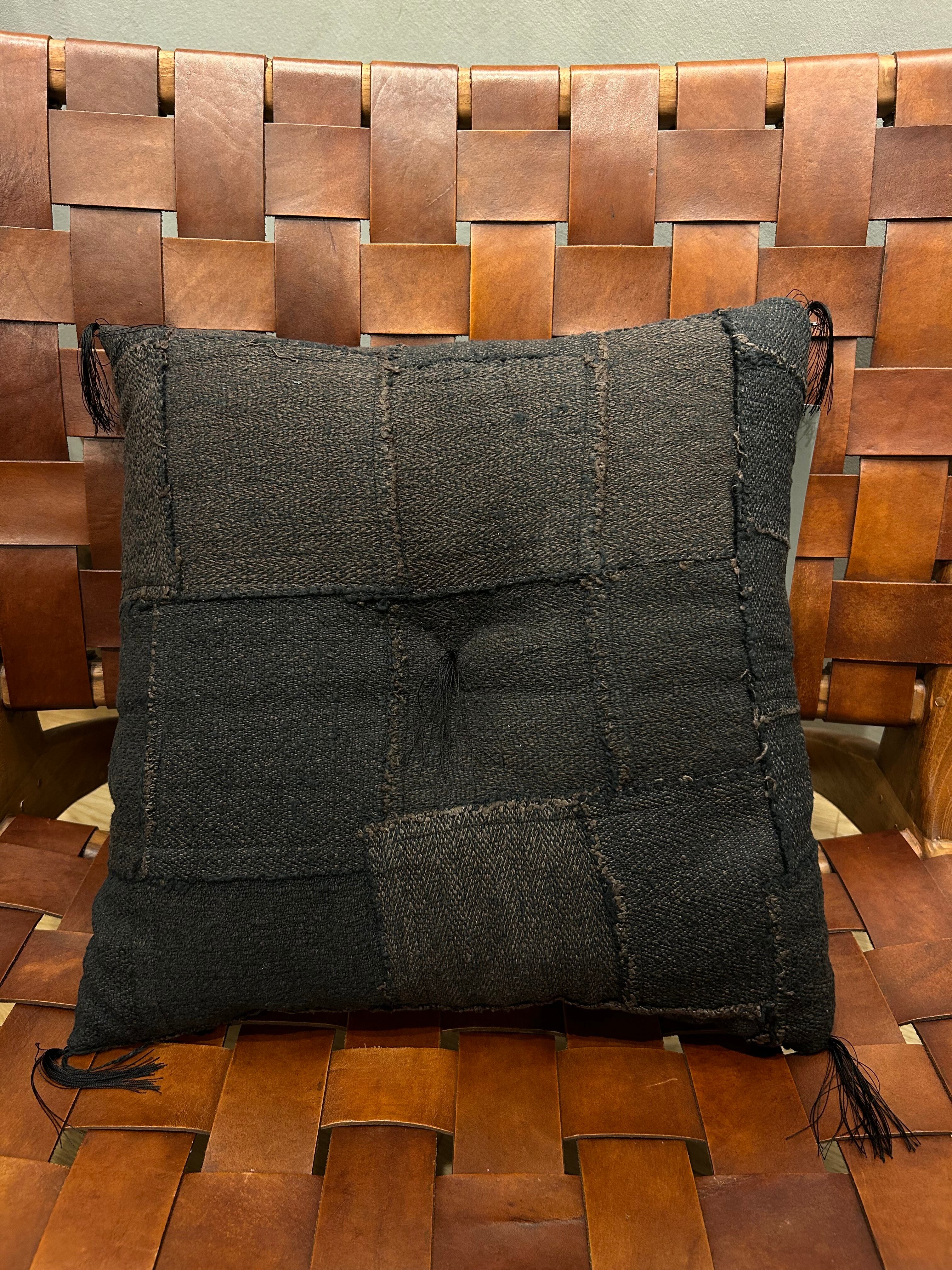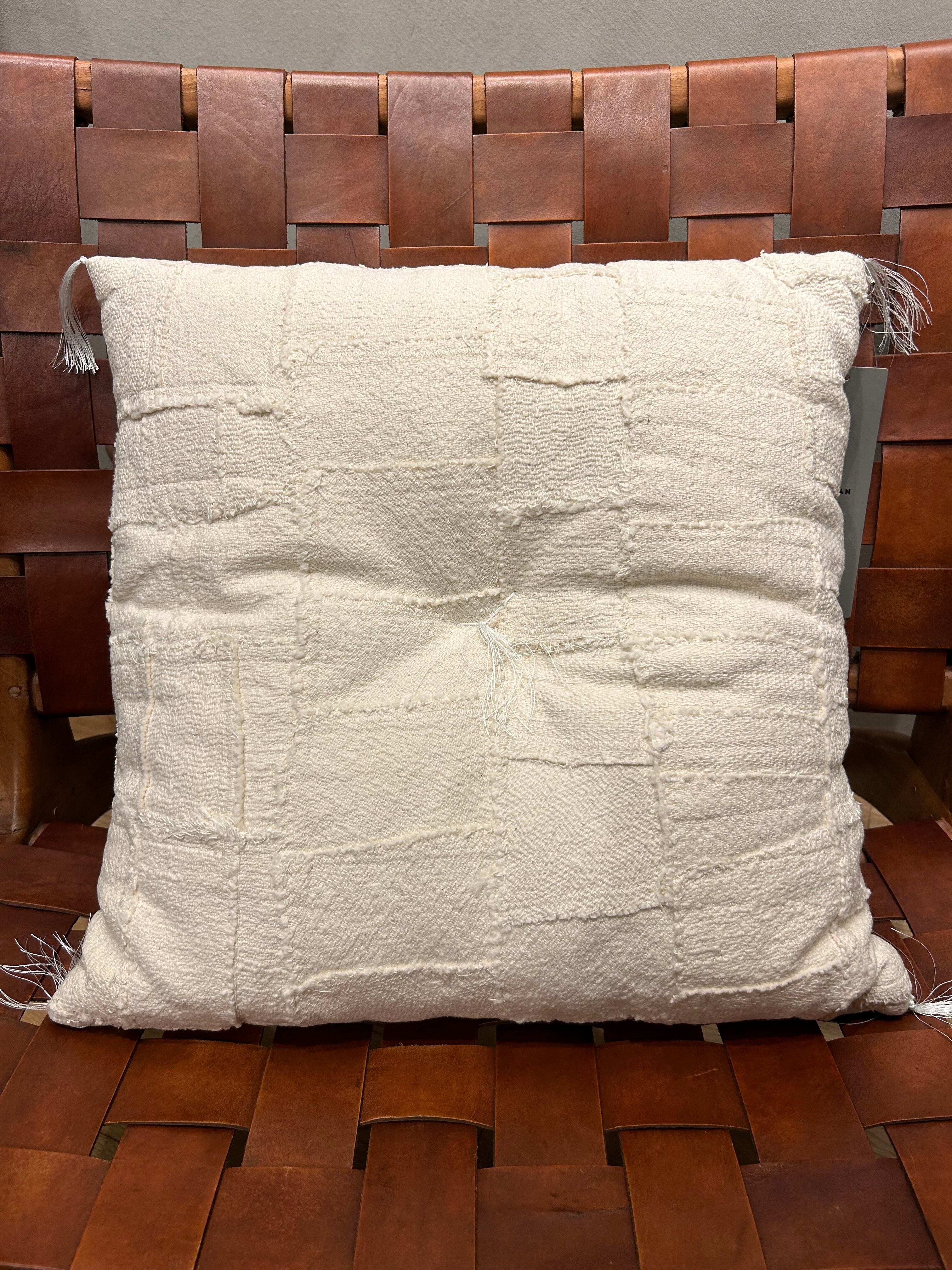 上記の生地の残布を再利用した製品になります。残布の継ぎ合わせは大阪は豊中にある、工房羅針盤の利用者の方にお願いしています。型にとらわれず自由にミシンで継がれているので、同じものは2つとありません。製品は継ぎ合わされた生地を用いて、大正8年創業の洛中髙岡屋の職人の方々によって、全て手作業で作り上げられています。座布団の綿入れを手作業で行うことで、均一で⻑時間座っても疲れにくく、骨盤や背骨をしっかり支えてくれる心地の良い座布団に仕上がります。色々と種類のある座布団の中でも「京座布団」というタイプです。詳しくはこちらをご覧ください。